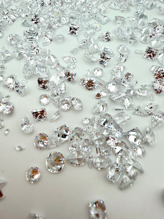 Small/Medium Size Cubic Zirconia Clear Pointed-Back Rhinestones Mix for Nail Art & DIY