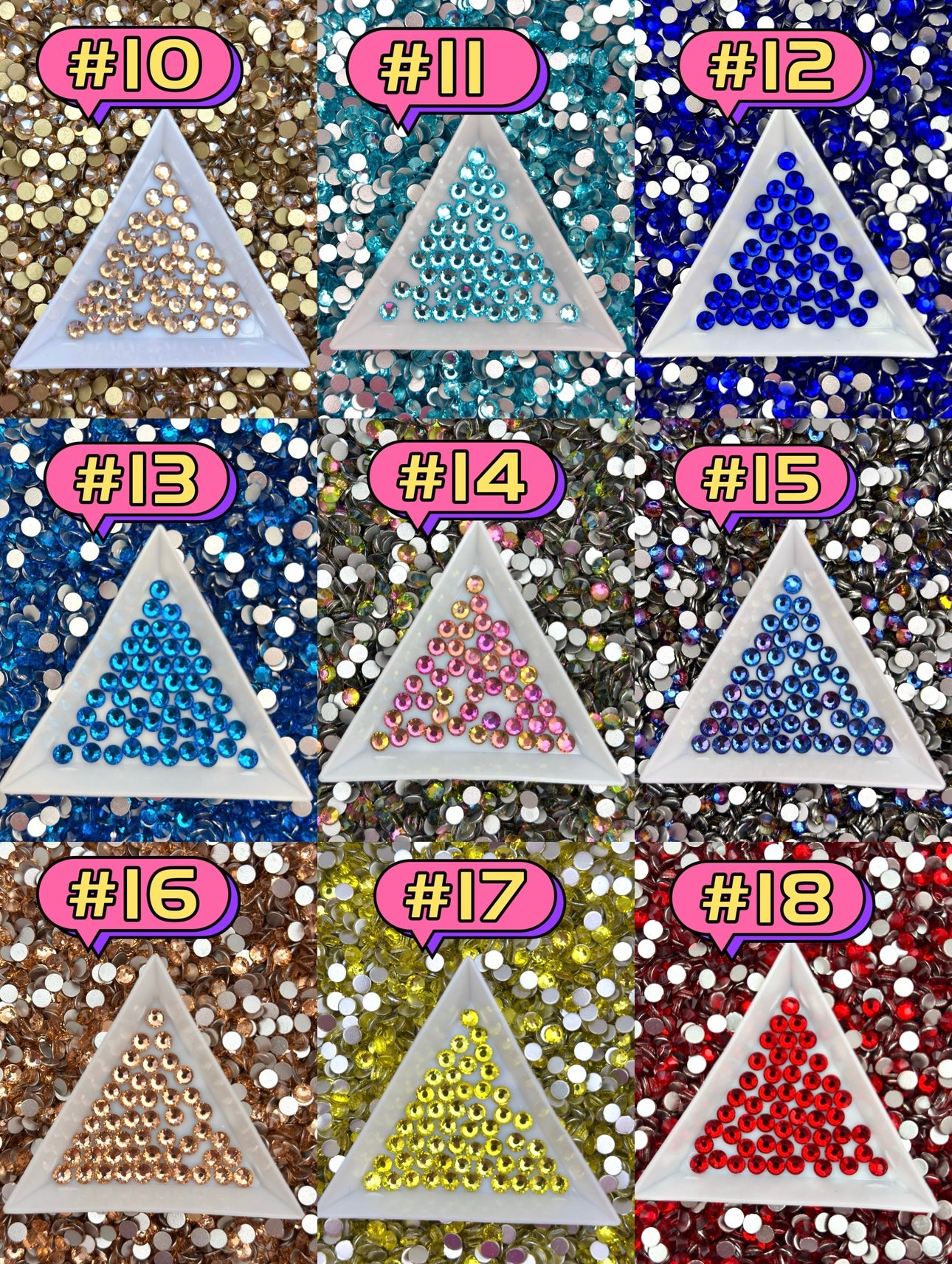 Flat Back Glass Rhinestones (No.10 - No.18) | Multiple Colors & Sizes (SS3-SS20)